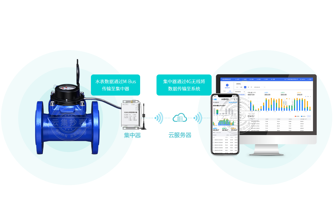 只需加一個(gè)抄表通訊模塊,即可輕松接入系統(tǒng),一個(gè)抄表模塊可抄讀多臺(tái)水表數(shù)據(jù)