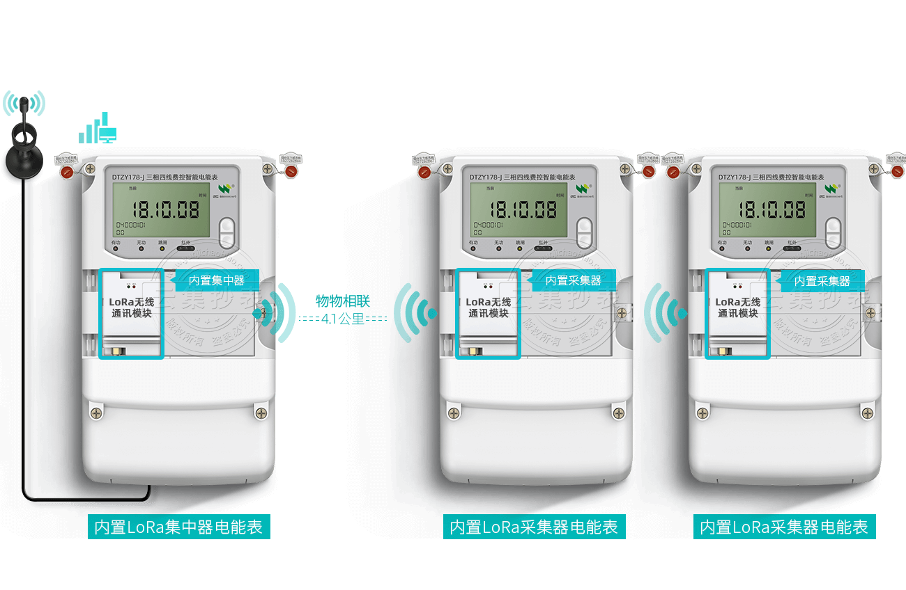 電表內(nèi)置LoRa模塊,模塊采用AI智能算法,電表一通