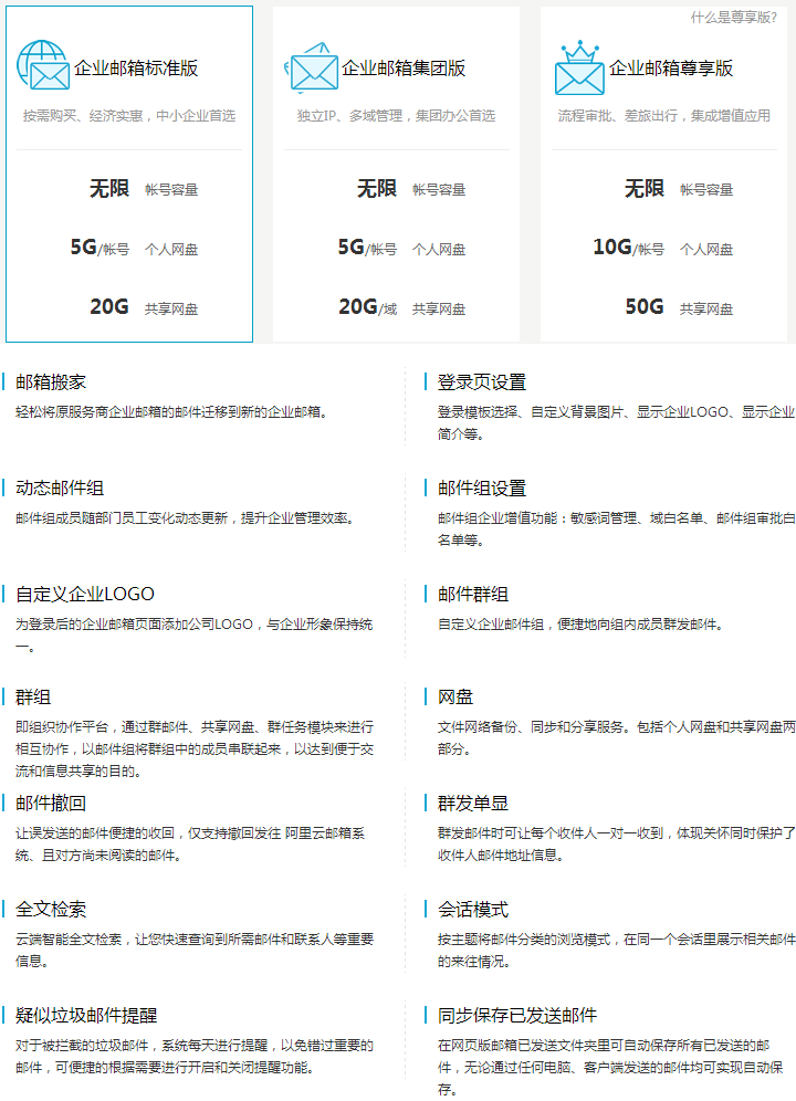 阿里云郵-集團版 無限容量;大附件中轉(zhuǎn)站:10G;