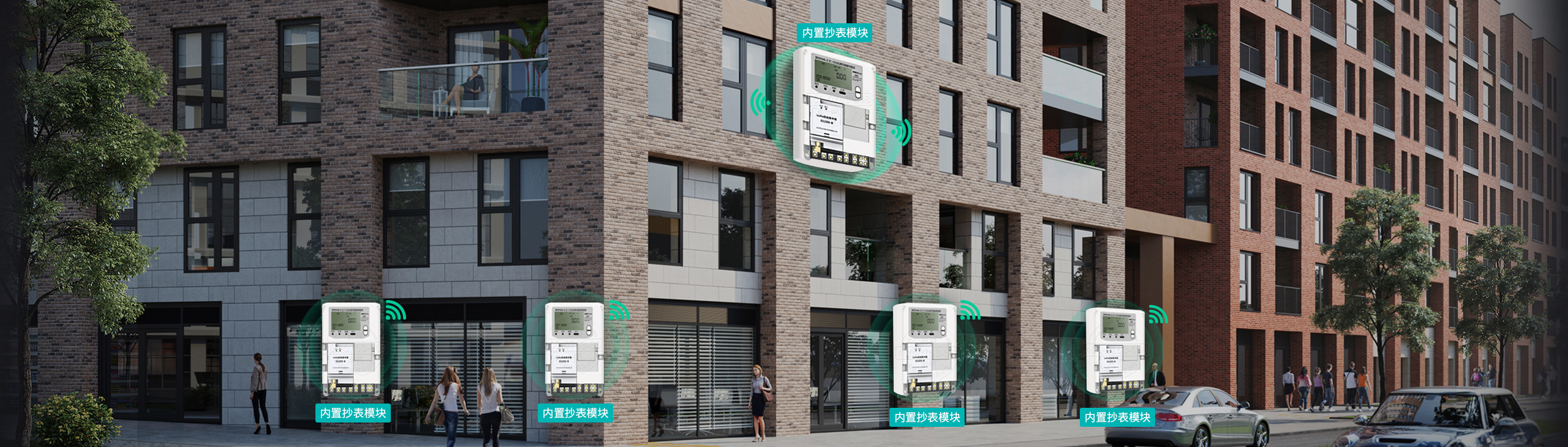 各電表自帶LoRa無(wú)線聯(lián)接模塊,相互中繼,無(wú)需接線,抄表系統(tǒng)具有AI智能算法,電表一通電即可與系統(tǒng)相連。