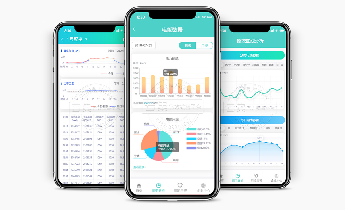 可分項(xiàng),分類,分點(diǎn),顯示電壓,電流,有功功率,功率因數(shù),有功電量等數(shù)據(jù)