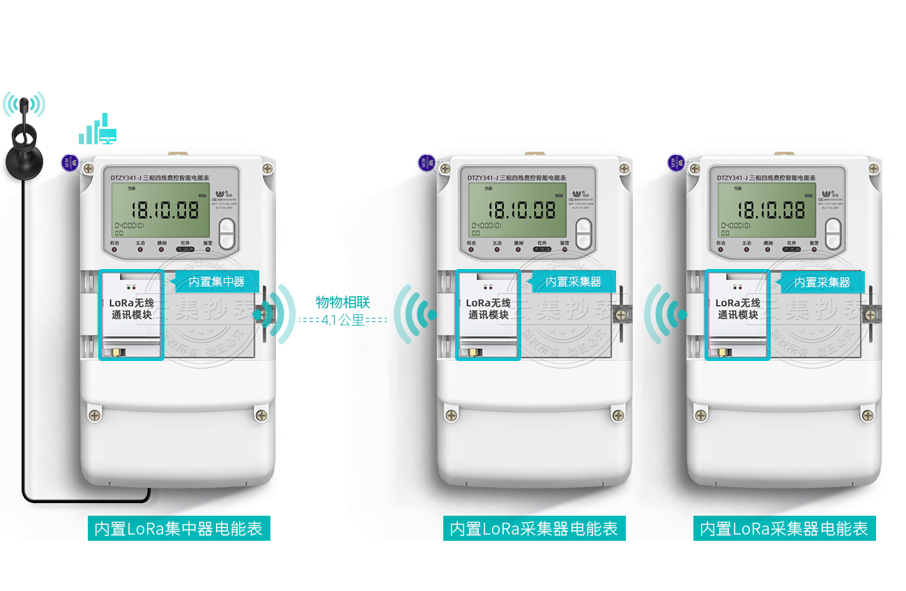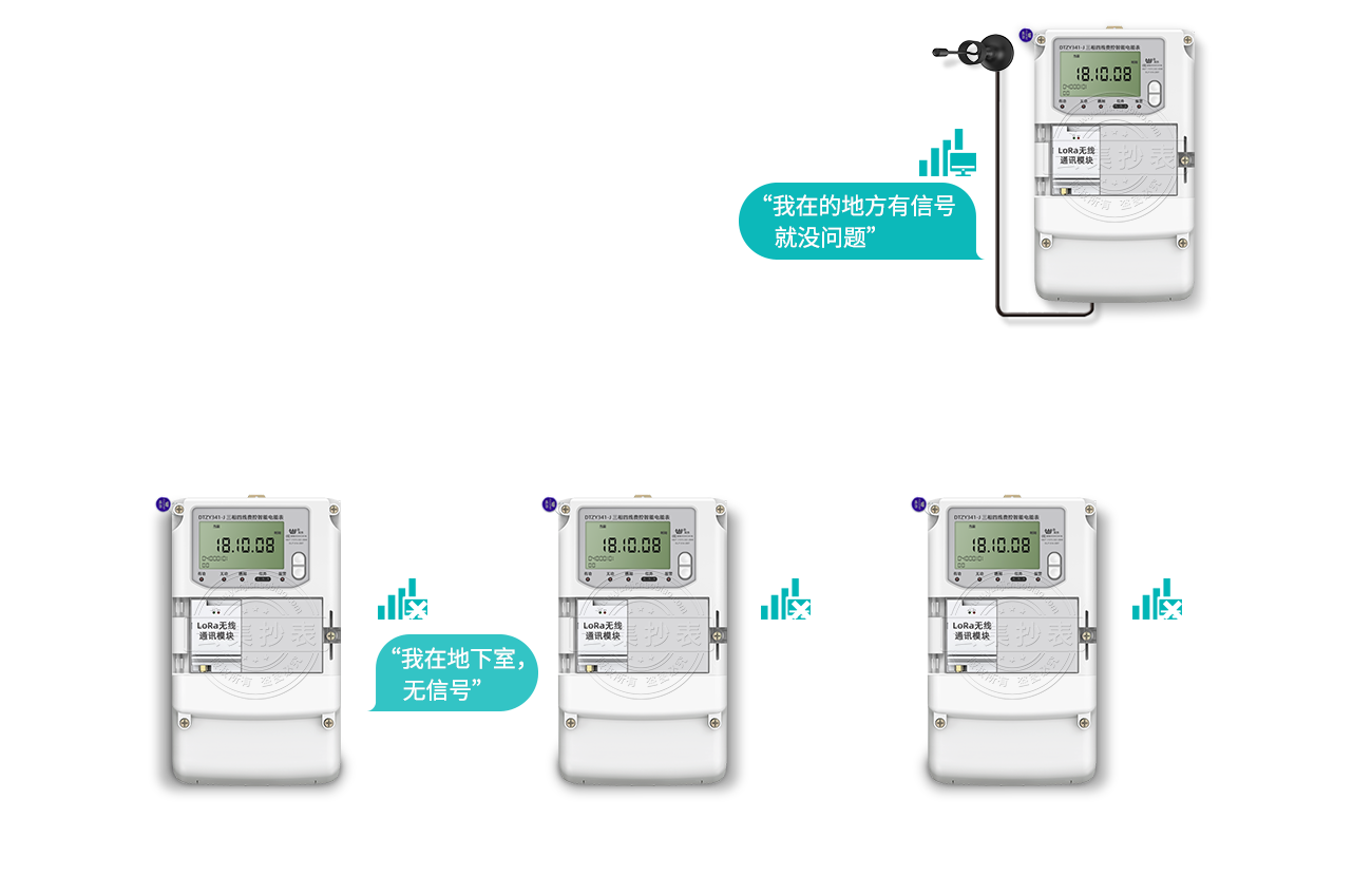 電表內(nèi)置LoRa模塊,模塊采用AI智能算法,電表一通