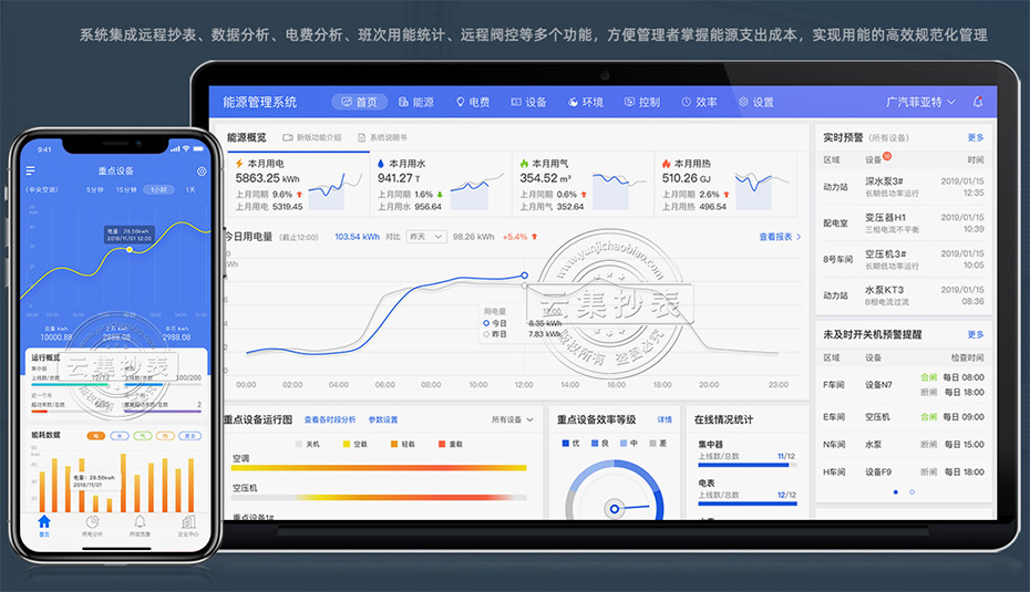1、提高智能管理水平,對用能信息自動采集與分析,免去煩瑣的人工抄表和填報(bào)操作。