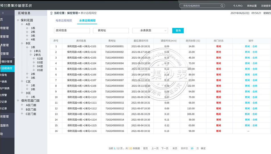 云集水電抄表管理系統(tǒng)研發(fā)了遠(yuǎn)程開合閘功能,當(dāng)業(yè)主沒有水電費(fèi)的時(shí)候,管理員可以根據(jù)提前設(shè)定的當(dāng)業(yè)主達(dá)到欠費(fèi)的限定額時(shí),系統(tǒng)自動遠(yuǎn)程控制水電表跳閘;繳費(fèi)后自動合閘。